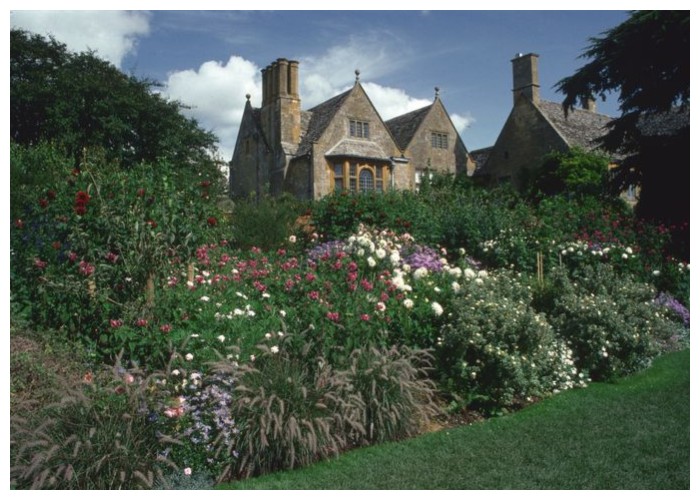 The gardens of Hidcote Manor in Gloucestershire embrace an enchanting, overgrown look reminiscent of an English fairy tale. Here, the lush foliage of bushes and climbing vines creates a mesmerizing, low-maintenance landscape that feels both wild and intentionally designed.